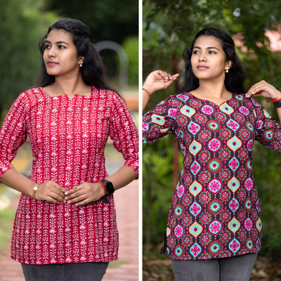 Short Kurti with 3/4th Sleeves & Comfort Fit (Deep Red & Brown)