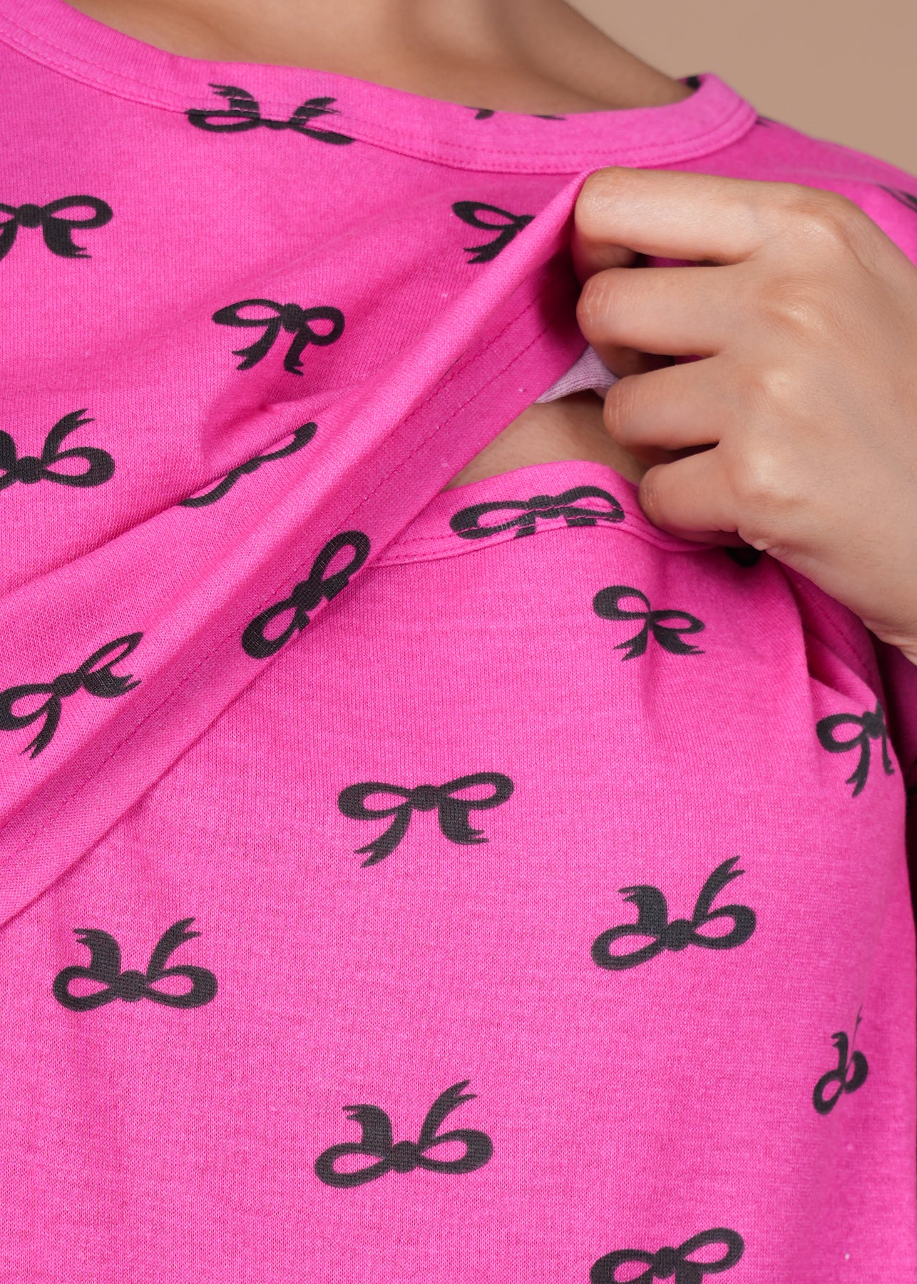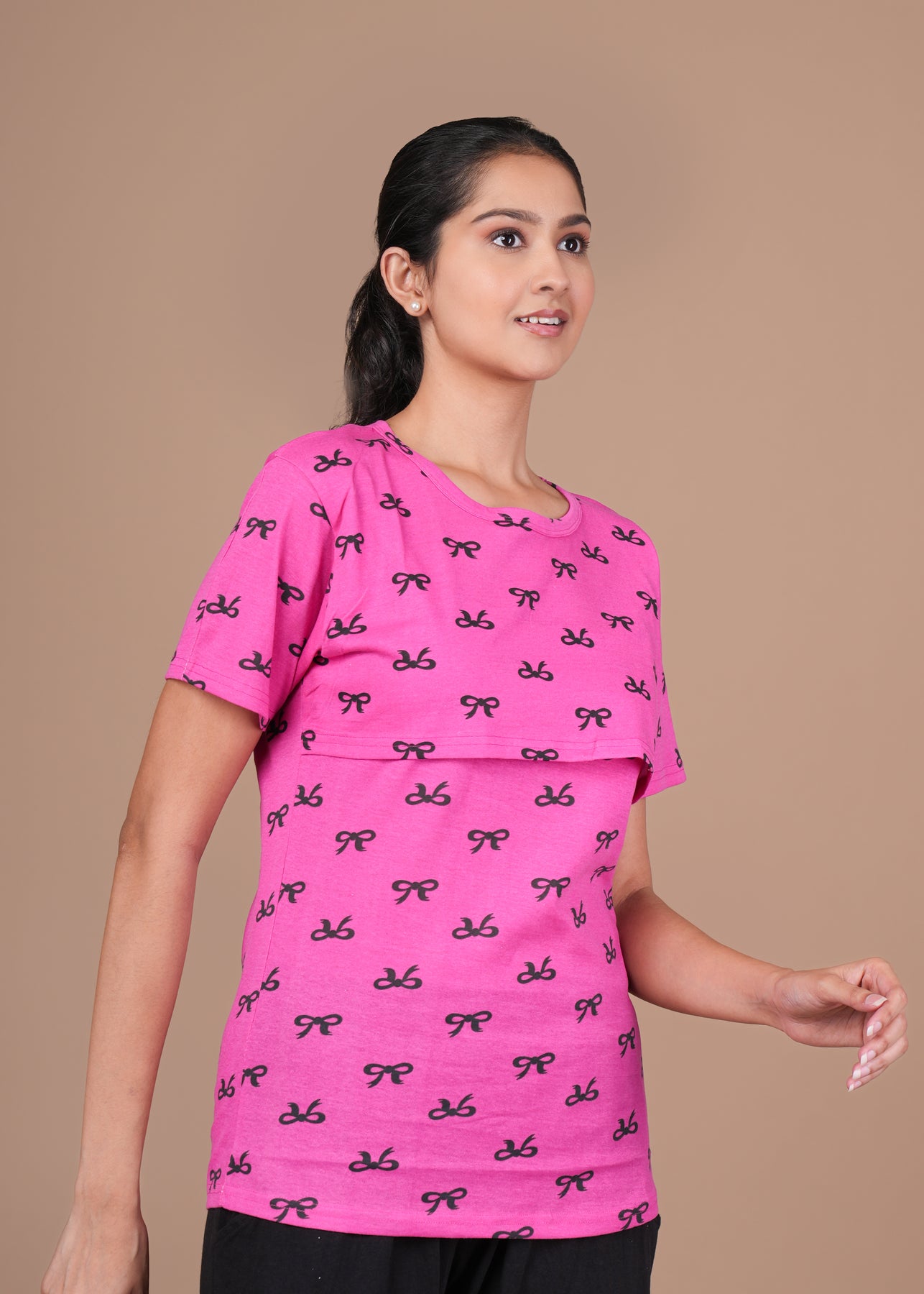 This short sleeve maternity top comes with a smart overlapping front design that allows convenient, discreet feeding — no zippers, no fuss! Perfect for both pregnancy and nursing, this top combines comfort, functionality, and style effortlessly.