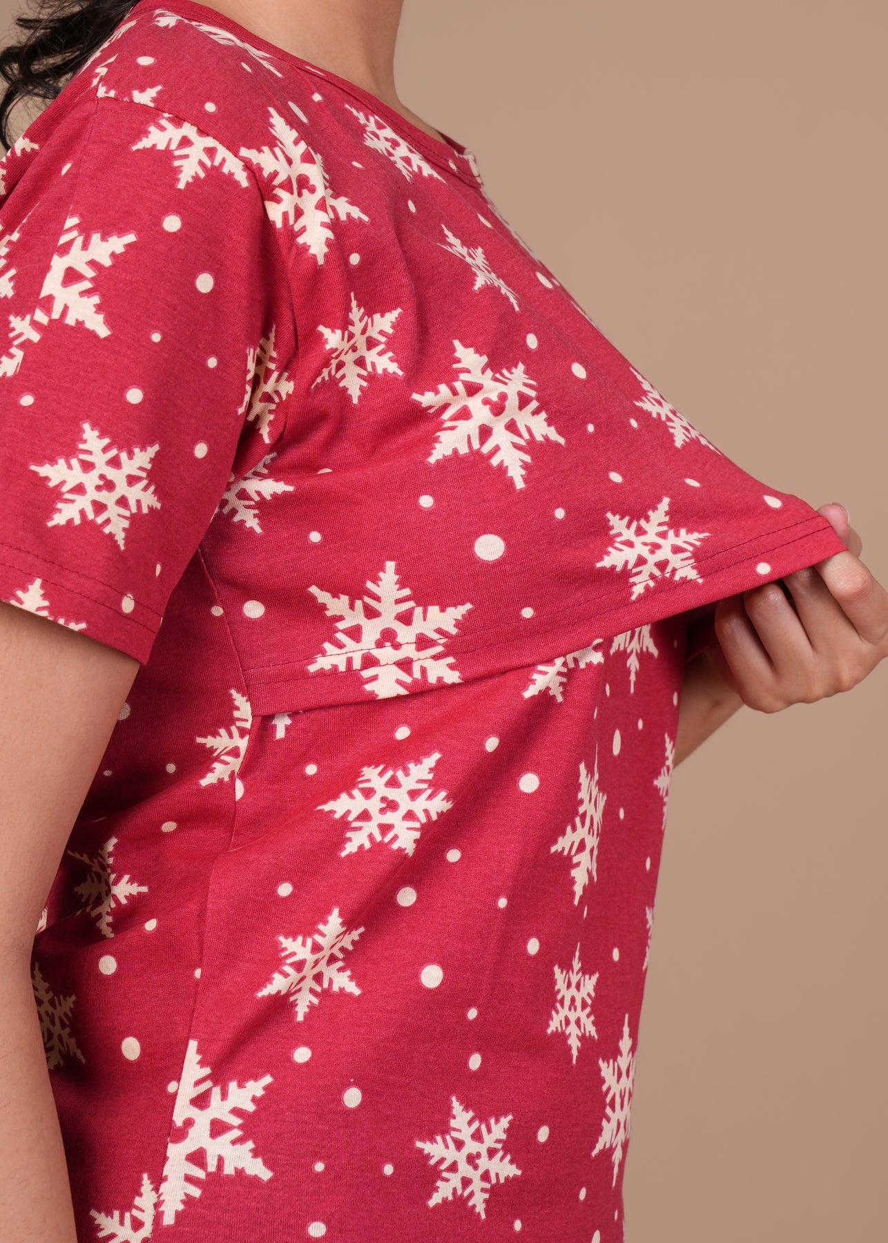 This short sleeve maternity top comes with a smart overlapping front design that allows convenient, discreet feeding — no zippers, no fuss! Perfect for both pregnancy and nursing, this top combines comfort, functionality, and style effortlessly.