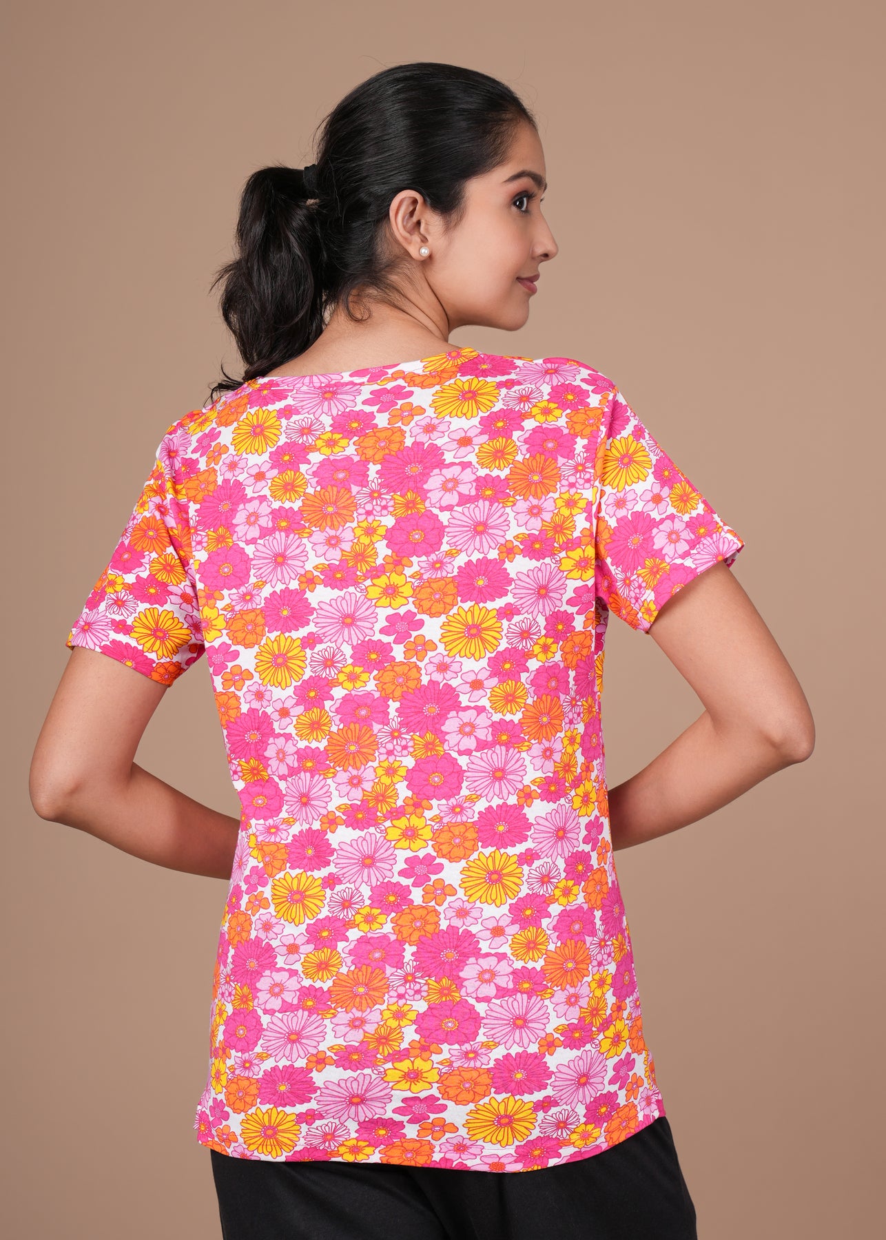 This short sleeve maternity top comes with a smart overlapping front design that allows convenient, discreet feeding — no zippers, no fuss! Perfect for both pregnancy and nursing, this top combines comfort, functionality, and style effortlessly.