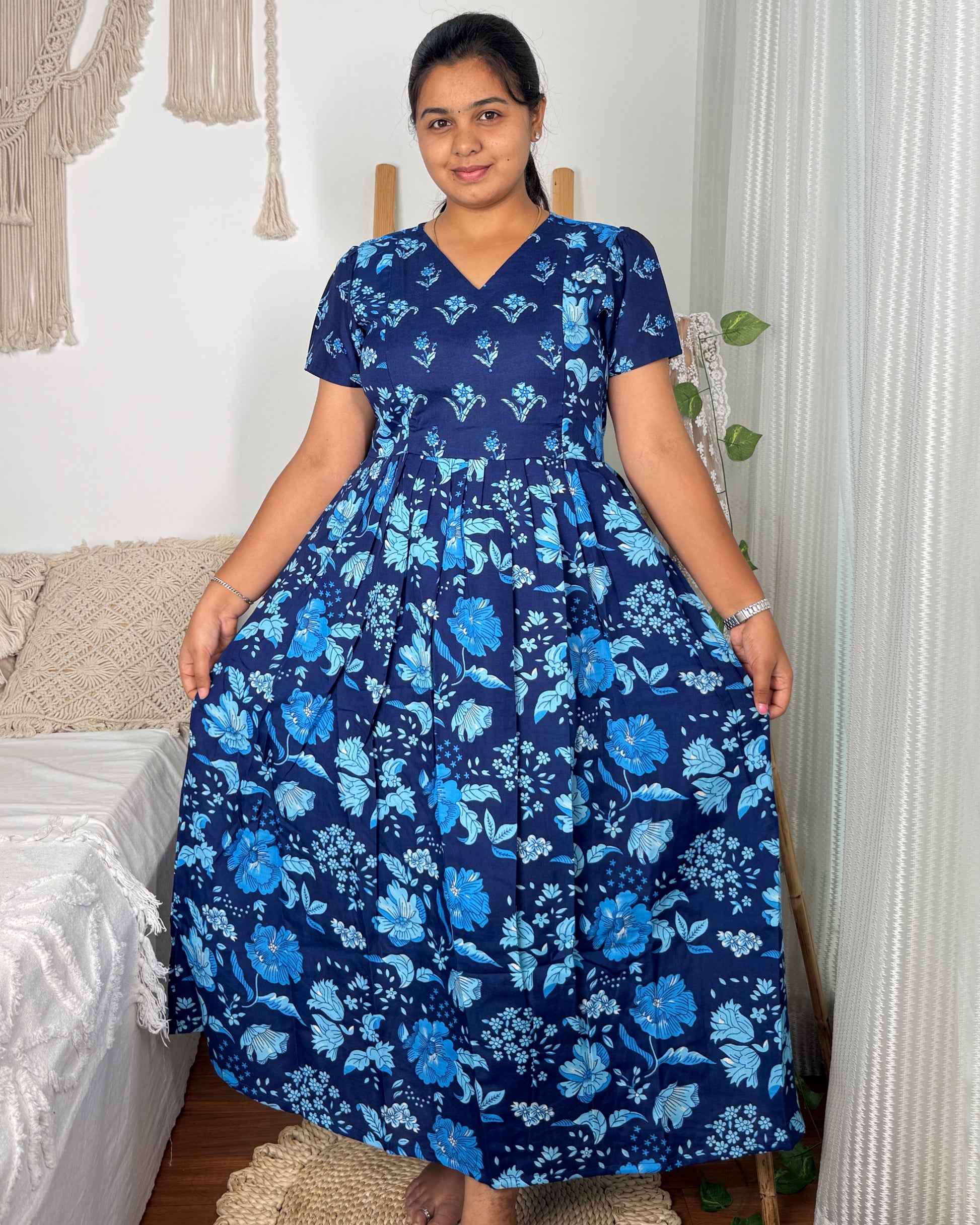 Feeding Women's Maxi Nighty – Full-Length Nightwear (Blue)
